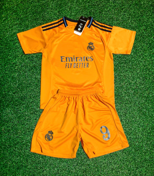 Kylian Mbappe Real Madrid Special Orange 3rd Jersey Toddler/Youth Soccer Jersey Kids Kit